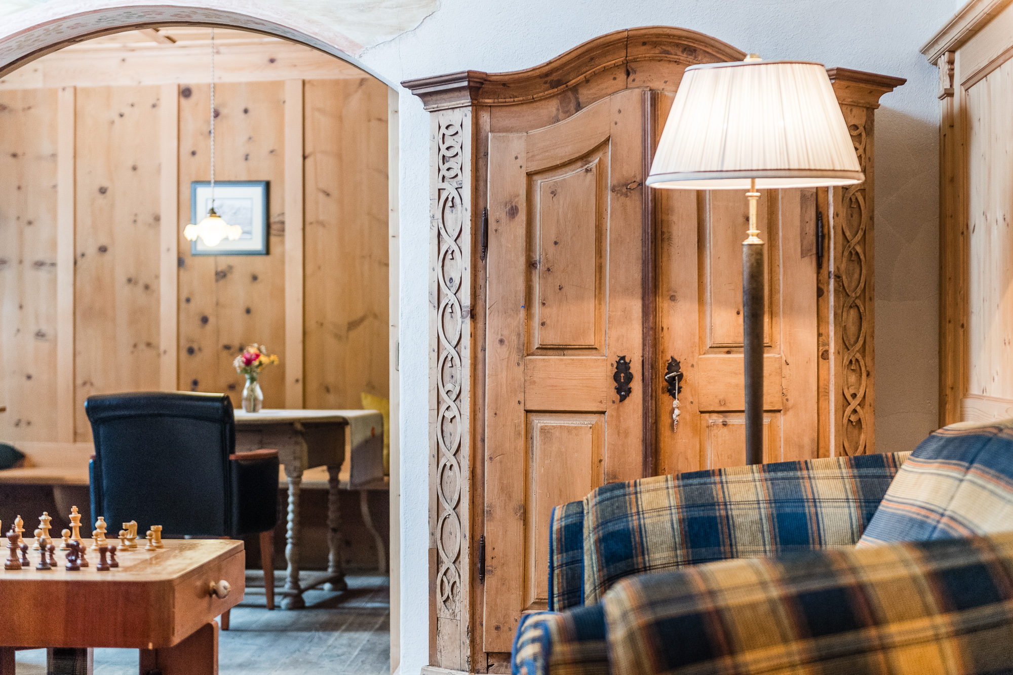 Il nostro angolo bar, piccolo, ma accogliente e ben organizzato, offre sedie e divani, un angolo lettura e il tavolo degli scacchi, per passare piacevoli momenti di relax. Se volete intrattenervi sorseggiando un buon bicchiere di vino vi suggeriamo di accomodarvi presso la nostra originale stube tirolese del 19esimo secolo.